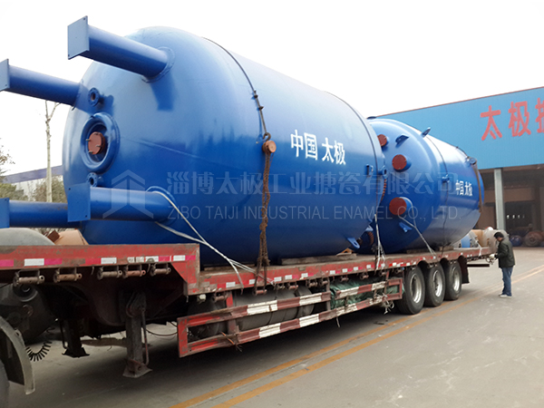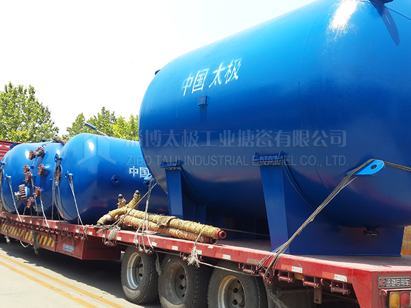 太極大型搪玻璃設備發貨現場